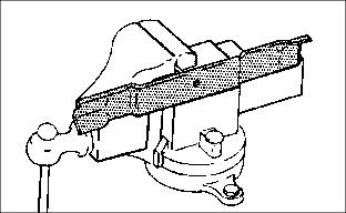2. Colocar la cuchilla sobre un clavo en una prensa. Girar la cuchilla para que quede horizontal.
