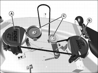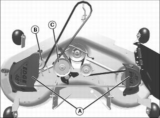 Cambio de la correa de transmisión del cortacésped (plataformas de corte de 122 cm [48 in.] y 137 cm [54 in.])