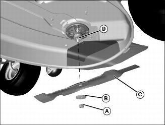 4. Aflojar y extraer la tuerca (A), la arandela (B) y la cuchilla (C).