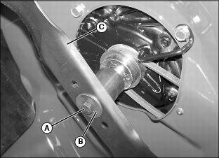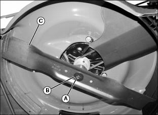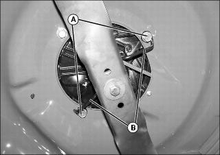 7. Install washer (B) and bolt (A). Make sure washer is installed with cup side to the blade.