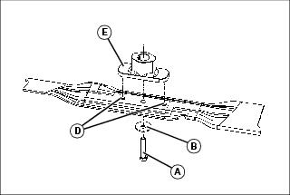 6. Install blade so that blade hub (D) fits between blade flanges (E).