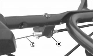 • Locate the drive cable (C) and thumbwheel adjuster (D) under the left side of the handle assembly.