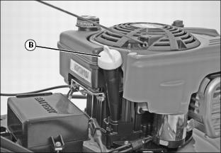 NOTE: Be sure the fuel tank is at least half empty before changing the oil. Change oil after mowing or run the engine briefly to lower the fuel in the tank to the appropriate level.