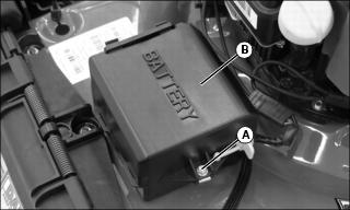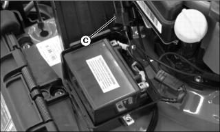 3. Install black negative battery cable connector (C) with hardware removed earlier.