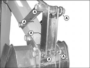 NOTE: If you use backhoe for more than 10 hours daily, lubricate all points listed above twice a day.