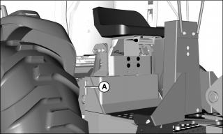 1. Remove SMV sign from the backhoe bucket cylinder bracket (A).
