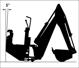 5. To aid installation, position backhoe on ground as shown, leaning away from tractor about 5°, and resting on bucket and boom pivot pin.