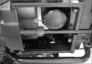 5. Carefully loosen and remove threaded fitting (C). Remove spring (D), filter element (E), and spring (F) from assembly housing (G).