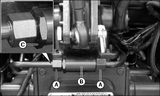 8. Assemble filter assembly. Tighten threaded fitting (C) to 69 N·m (51 lb-ft)