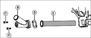 7. Clean suction screen (E) and suction screen cover (B) with a mild solvent. Allow to dry.