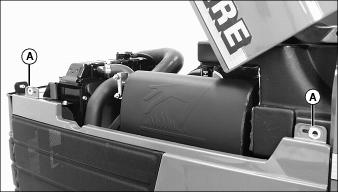 3. Flip up and turn spring loaded fasteners (A) to the horizontal position.
