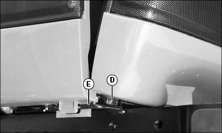 6. Lift grille so alignment tabs (D) are out of the rod supports (E) and remove.