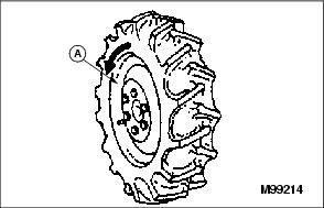 Machines equipped with directional type tires (such as bar tires) have directional arrows (A) located on the tire sidewall. Under most conditions, tires should be installed with the directional arrow pointing in the direction of travel.