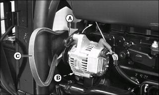 8. Remove belt (C) from alternator sheave, fan sheave and crankshaft sheave.