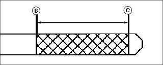 6. Check oil level on dipstick; oil level should be between levels (B) and (C) on dipstick.