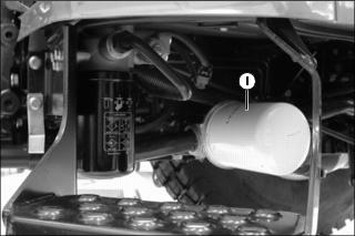 11. Position a drain pan under the hydraulic oil filter. Remove and discard filter. Allow residual oil to drain completely.