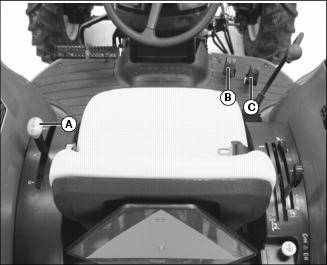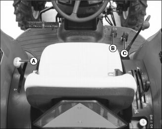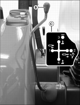 2. Carefully raise ROPS crossbar (C) to the operating position.