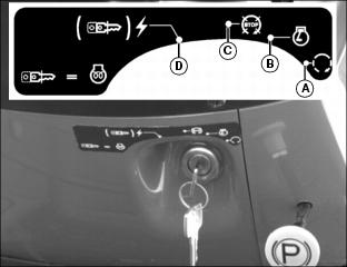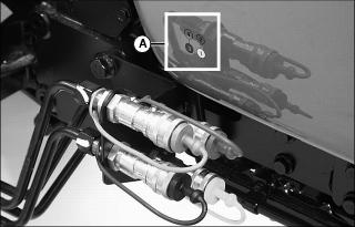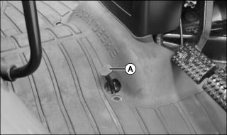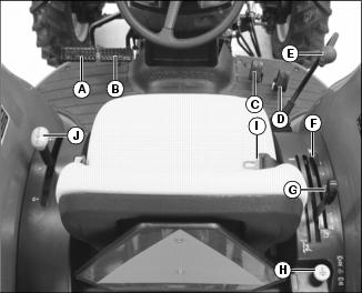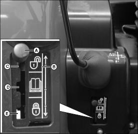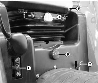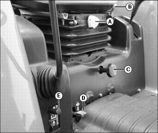 Step (A) is located on the left side of machine. Use step for entering and exiting the operator station.
