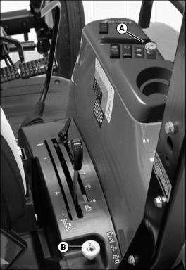 · Make sure SMV (Slow Moving Vehicle) emblem (A) and warning lights (B) are clean and visible. If towed or rear-mounted equipment obstructs these safety devices, install SMV emblem and warning lights on equipment.