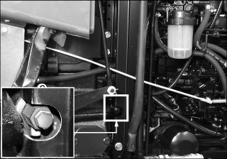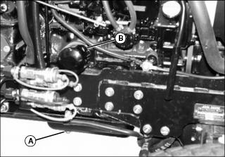 2. Locate petcock drain (A) behind the brake pedals or travel pedals on the right side of the machine.