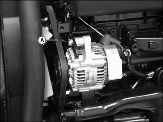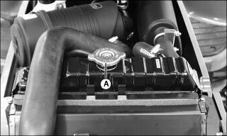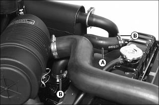 3. Remove air intake hose (A) from opening between the grille and radiator.