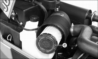 5. Remove and discard primary element (C). Replace with a new primary filter element.