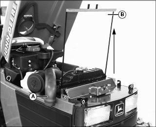 9. If oil is above level (B) on the dipstick, drain to proper level.