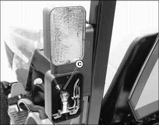 Turn screw (D) clockwise to adjust light beam toward center of tractor or counterclockwise to adjust light beam away from center of tractor.