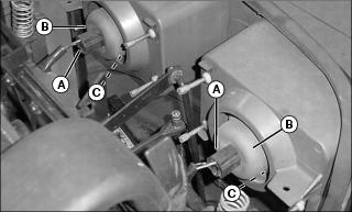 Turn screw (B) clockwise or screw (C) counterclockwise to adjust light beam down.