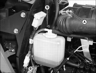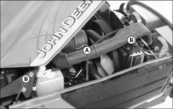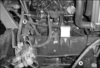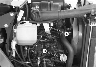 5. Check hose clamps (B) as needed.