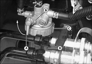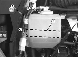 7. Check hose clamps (D) as needed.