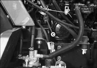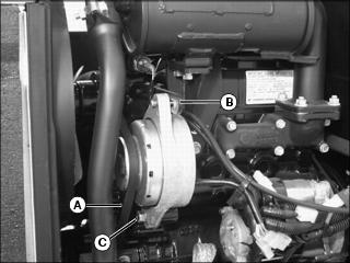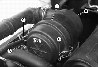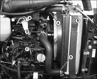 6. Check lower radiator hose (C) for damage or cracking. Replace if necessary.