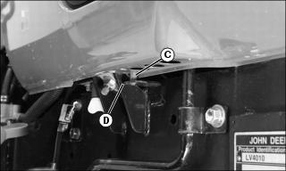 1. Install lower side panel stud (C) into bracket (D).