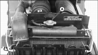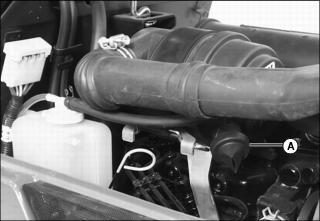 4. Check upper radiator hose (A) for damage or cracking. Replace if necessary.