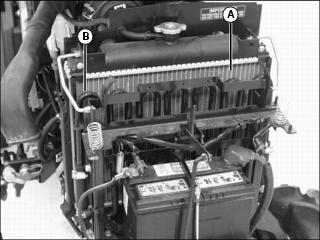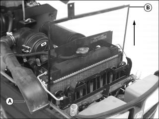 4. Lift and remove radiator screen (B).