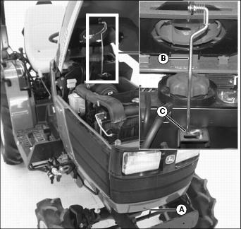 3. Remove dipstick (A). Wipe with a clean cloth.