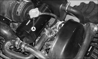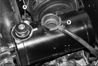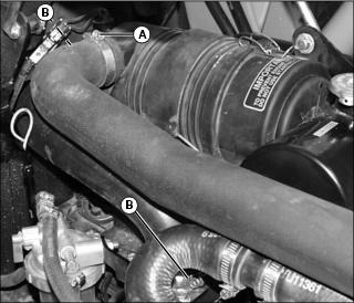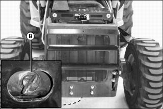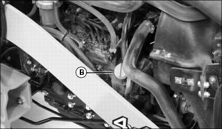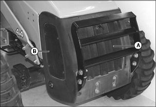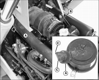 4. Locate dust unloading valve (A) attached to the front of the air cleaner canister (B).