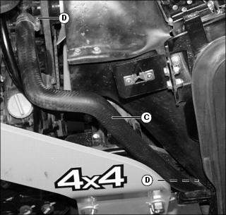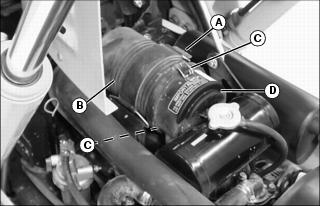 9. Install air cleaner canister cover (D) with rubber dust unloading valve pointing downward.