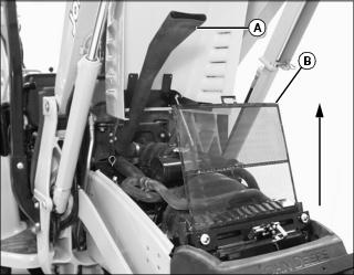 2. Raise front loader boom and install loader boom service lock. (See Using Loader Boom Service Lock in the SAFETY section.)