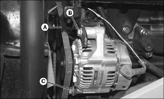 NOTE: Replace alternator belt if excessive wear, damage or stretching is detected.
