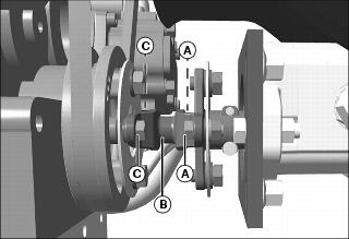 20. Install capscrews (A) and nuts to the pump shaft coupler. Tighten to 18 N·m (13.3 lb-ft).