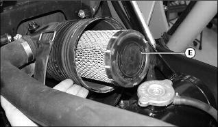 8. Remove and discard primary element (E). Replace with a new primary filter element.
