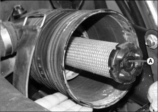 IMPORTANT: Avoid damage! Dirt and debris can enter the engine when removing the filter element. Service filter elements only when indicator light on the instrument panel is illuminated.