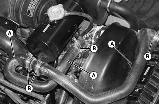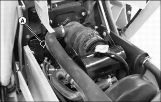 4. Check that foam air blocks (A) around radiator are in place and not damaged.