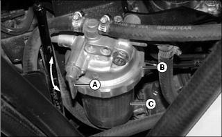 6. Position drain pan under fuel filter sediment bowl to catch fuel spillage.