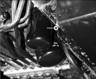 12. Locate hydraulic oil filter (H) under left side of machine.