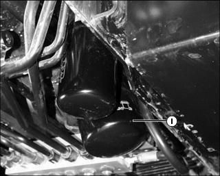 13. Position a drain pan under the hydraulic oil filter. Remove and discard filter. Allow oil to drain completely.