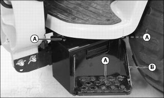 2. Remove three spring locking pins (A) and battery box step plate (B).