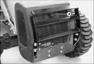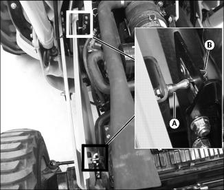 1. Raise front loader boom and install loader boom service lock. (See Using Loader Boom Service Lock in the SAFETY section.)