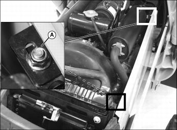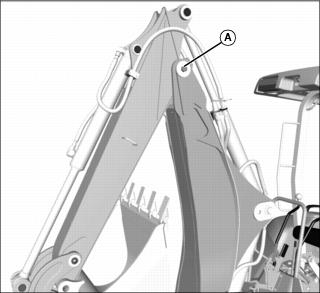 1. Check torque on the boom-to-dipperstick pivot pin bolt (A).
